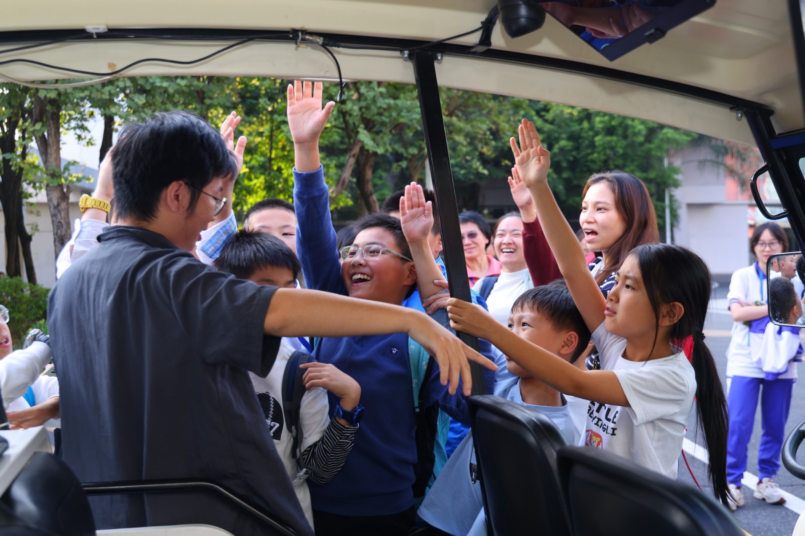 此外,粤港澳大湾区的师生代表们还走进广东省新型研发机构——广州软件应用技术研究院,深入了解人工智能与自动驾驶技术。在“人工智能与大模型”和“探索自动驾驶的秘密”主题讲座中,孩子们踊跃提问,与专家互动热烈。实物展示和互动体验环节让师生代表们亲自体验,揭开自动驾驶和大模型技术的神秘面纱,直观感受科技魅力,展望未来人工智能的全新景象。