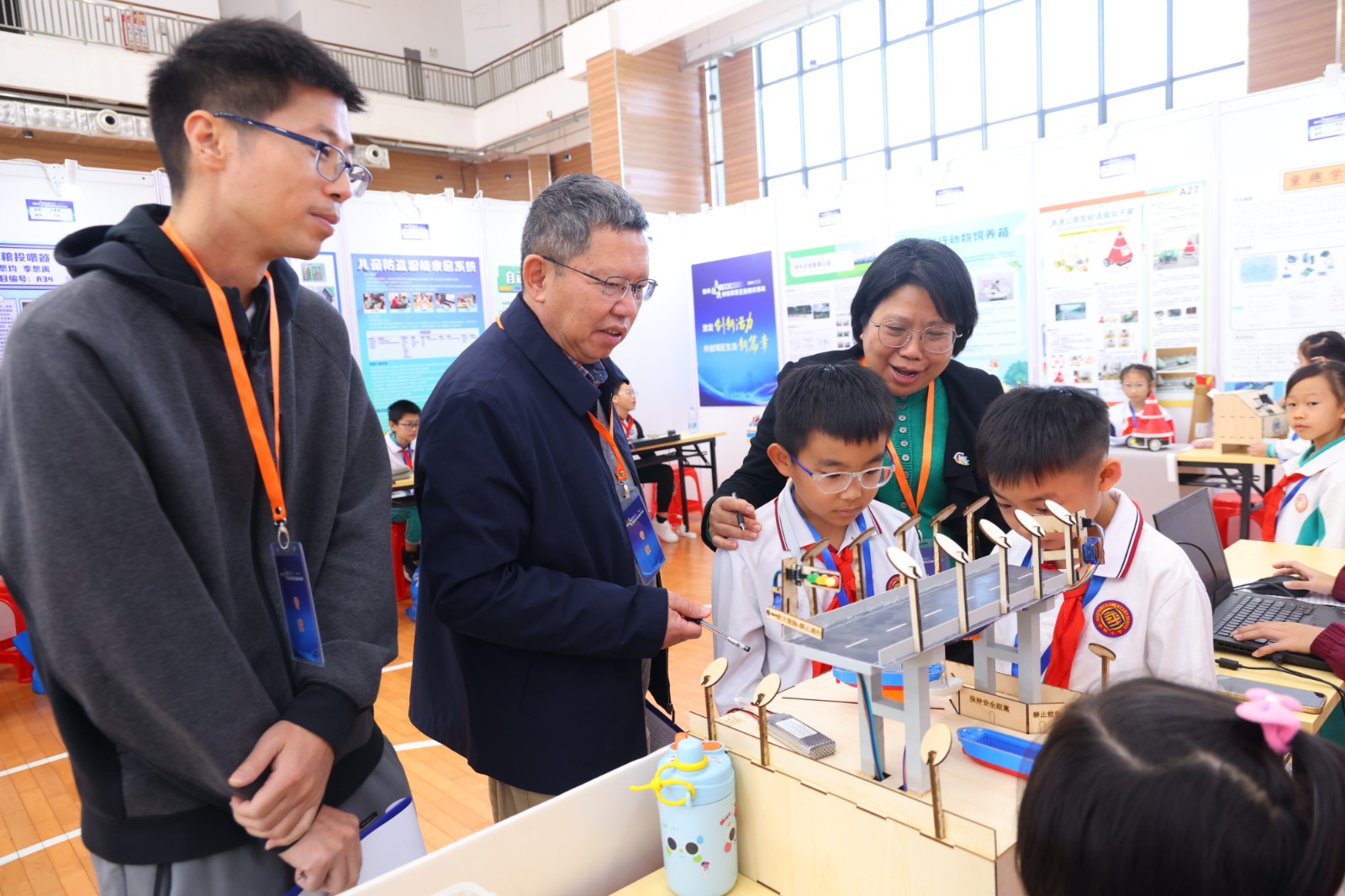 来自粤港澳大湾区近500名师生代表参与现场作品分享与交流。“在教师研讨中,创客教育教学与环保理念的结合(废木重生升级再造计划)”、“防骗教育——利用CoSpaces VR软件设计互动游戏”等创客教学案例,为老师们的创客教学实践提供了思路与灵感。在学生创客作品展区,各类创意十足的创客作品琳琅满目,令人目不暇接,从创意艺术品到智能家居,从创意机器人到智能穿戴设备,每一件作品都凝聚了学生们的智慧与汗水,充分展示了他们在科技创新领域的无限潜力和创造力。