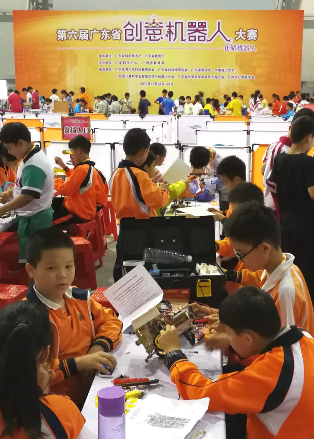 2017年10月28日-29日,由广东省教育厅、广东省科技厅指导,广州市教育局、广东科学中心主办,广州市青少年科技教育协会、广东省科技馆研究会、广东发明协会、华南理工大学、广东省计算机学会智能软件与机器人分会、广东省计算机学会软件工程分会和广州市计算机学会等单位共同承办的第六届“广东省创意机器人大赛”在广东科学中心举行。大赛的主题为“仓储机器人”,创意来源于当今发达的物流业,模拟物流仓库的智能管理过程,要求参赛者根据一定的标准设计、制作机器人,并现场进行激烈的比拼,能够全面考察参赛选手动手、创意、合作能力和创新思维等。