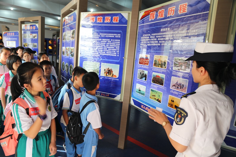 活动期间,军事科技专家通过古今中外的战例对比以及最新科技创新成果在国防中的应用,给师生们讲解了科技创新对于建设强大海军的重大意义,勉励同学们好好学习科技知识,立志成为科技强军、固我海防的实践者、参与者。在参观部队军事博览中心过程中,部队讲解员结合文字、图片对比和专业的讲解,向同学们介绍了海军部队履行使命、不畏艰险和牺牲、顽强拼搏的战斗精神及伴随科技发展而壮大的光辉历程,并拓宽了同学们对海军科技装备知识的眼界。海军官兵在军舰各战位向大家讲解了舰艇的性能、用途及新科技在舰艇装备建设中的重要应用。活动临近结束时,同学们依然兴致不减,争着跟带队的海军官兵合影留念,依依不舍离开舰艇。